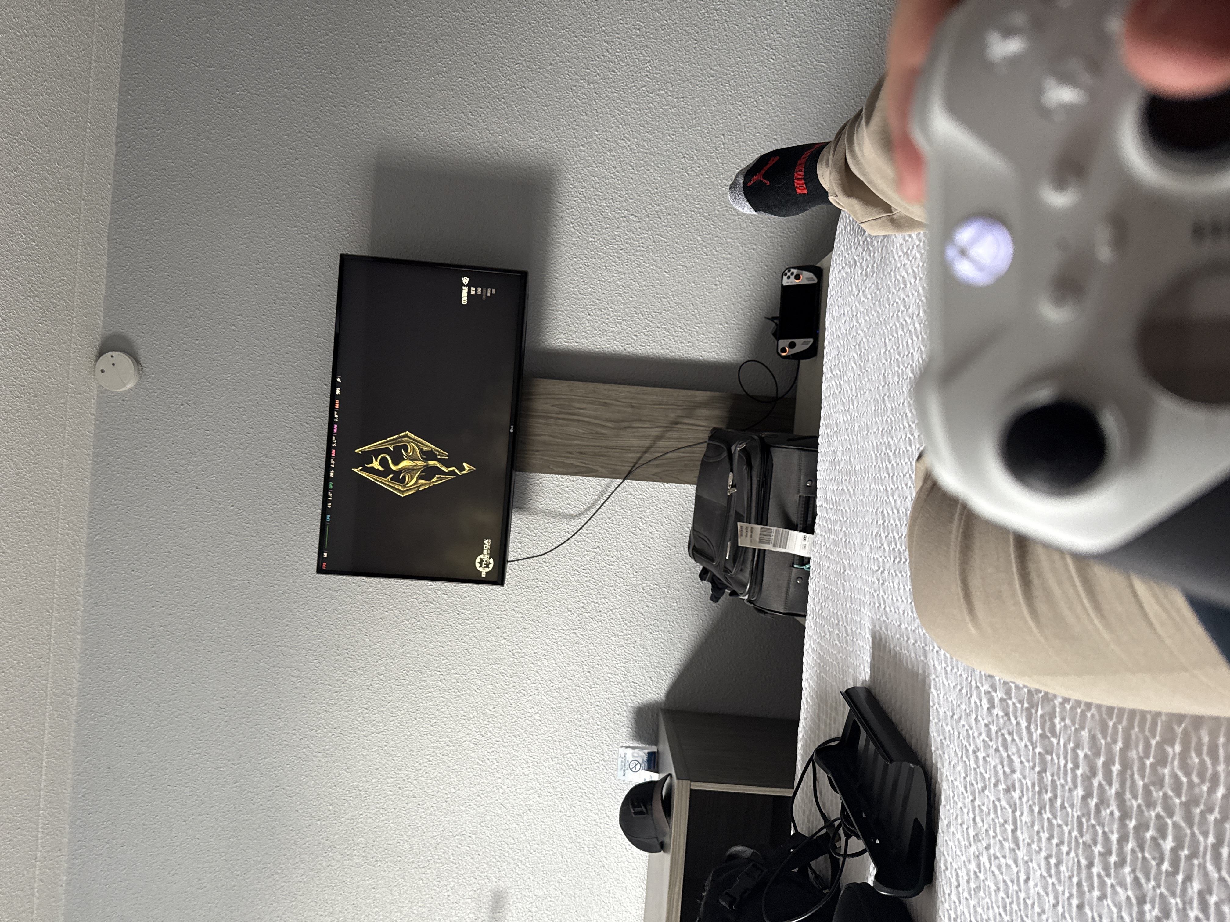 Hooked my Ally up to the TV so I could play 5 minutes of Skyrim before a short nap.