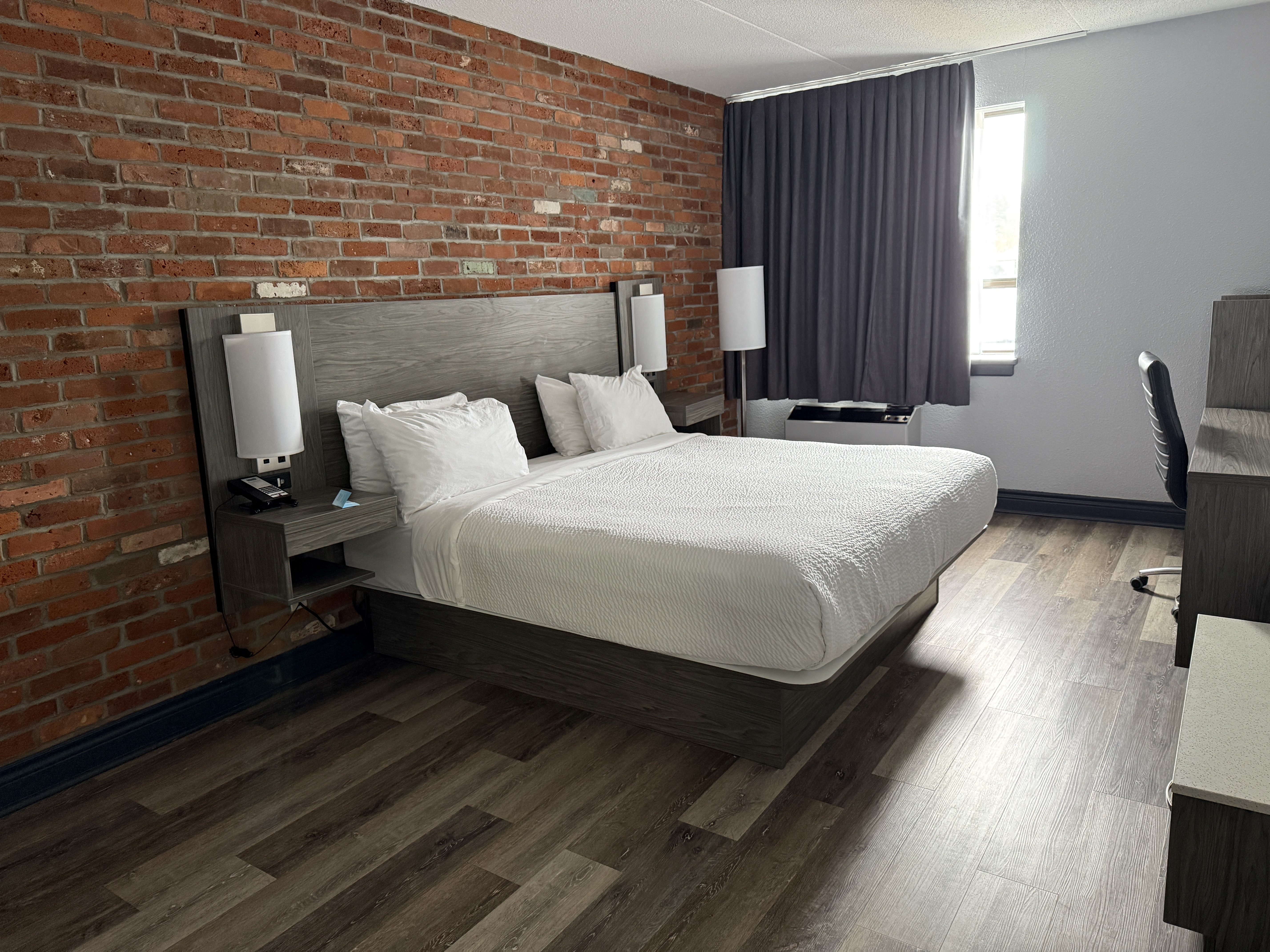 Picture of the hotel room before I made a mess of it. The brick wall is fake by the way.