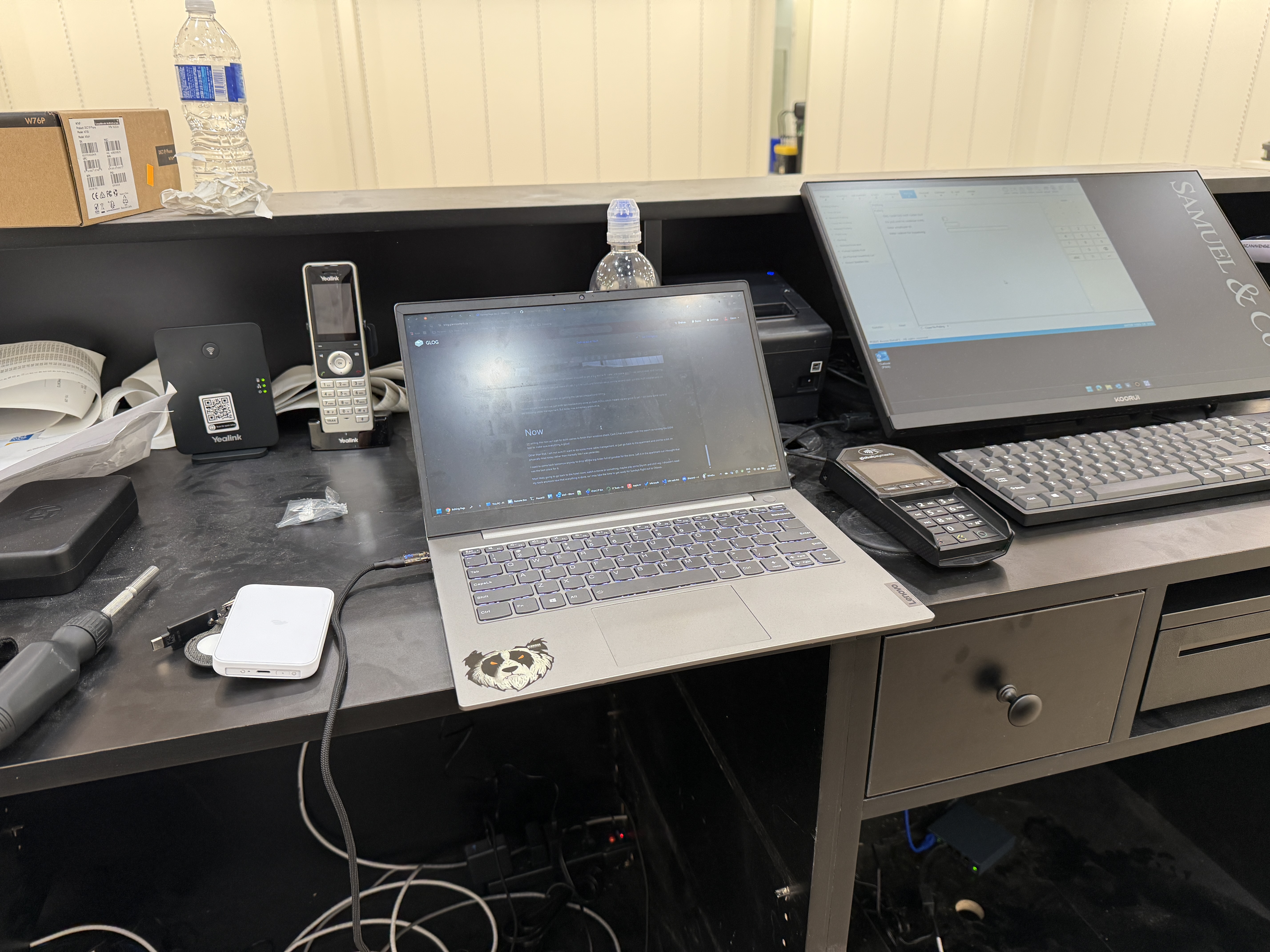 Its now almost 4pm and we got both test transactions done on both POS's which means we are good to sell. I still have some work to do including cable management. But today was extremely productive.