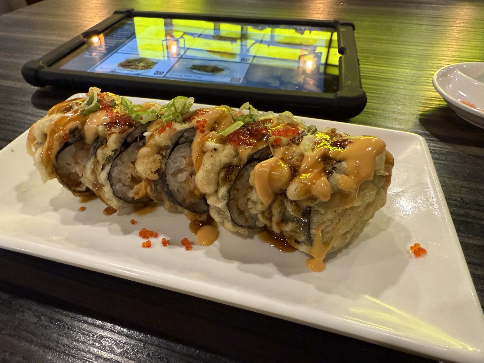 This was the AK-47. Don't know how exactly it was made, but it was good. I believe they make the roll, then deep fry it completely, then put all the sauces on it and cut it up. Baller, would eat again.